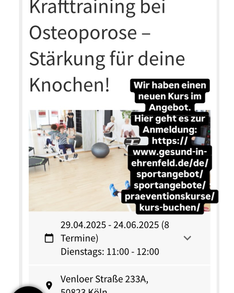#Ehrenfeld #Vereinssport #Osteoporose #Sport #Bewegung #Köln
